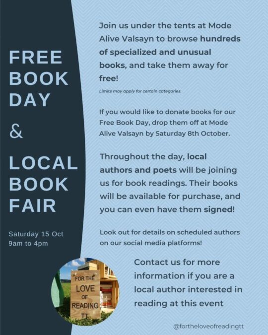 This Saturday 15th October at Mode Alive Valsayn, alongside our Free Book Day!