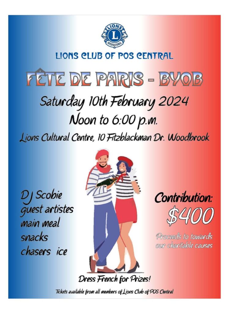 Come fete with us in Paris at the Club’s Fete de Paris on Carnival Saturday 2024 from noon till 6:00 p.m. Bring your alcohol (and your cooler, if you like).