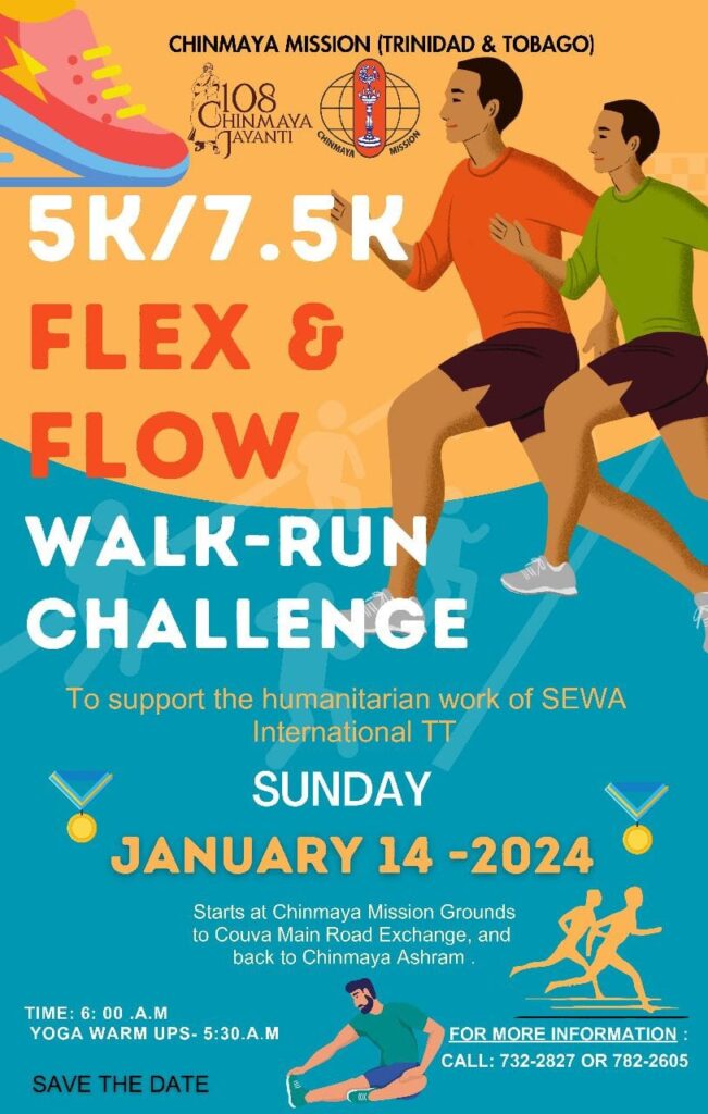 *CMTT FLEX & FLOW 5KM/7.5KM WALK/RUN CHALLENGE* Hari Om! ????♂ Join an Unforgettable Journey with Chinmaya Mission 5K/7.5K Flex & Flow Challenge. DETAILS: • Sunday, 14th January 2024 •