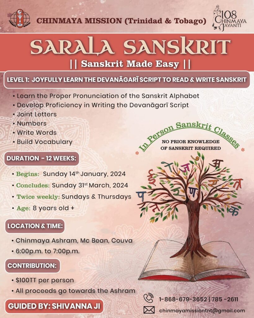 2024 SANSKRIT CLASS Hari Om! Starting January 2024 Sarala Sanskrit – Sanskrit made Easy In – Person Sanskrit Classes with Shivanna-Ji (No Prior Knowledge of Sanskrit Required) Level 1: