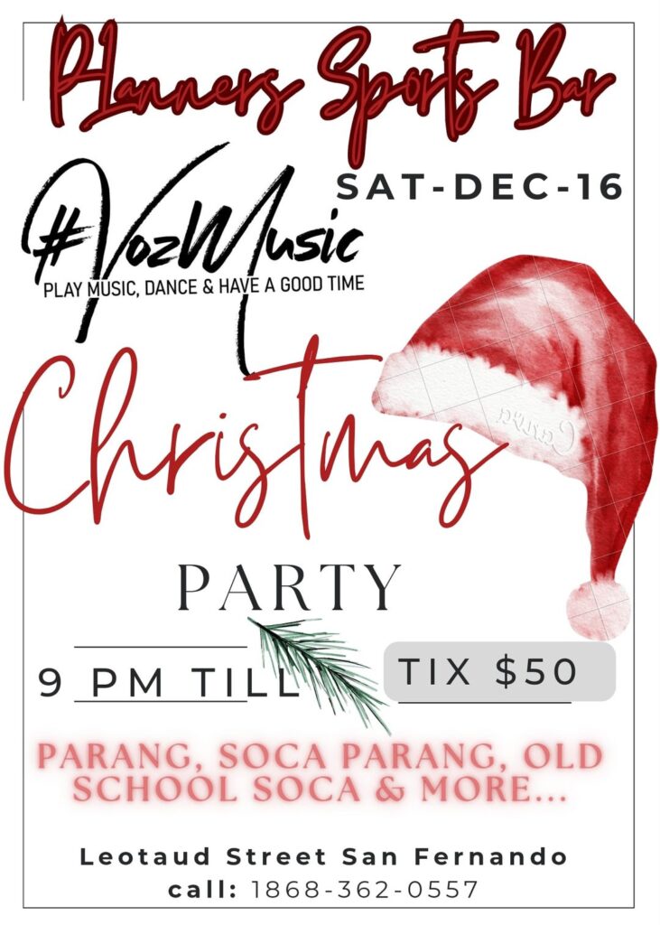 The Naparima Bowl in collaboration with The National Parang Association of Trinidad & Tobago presents ‘Joyeux Noel PARANG FESTIVAL’ 6PM (Gates open at 5PM) ADM: $100 (pay more at