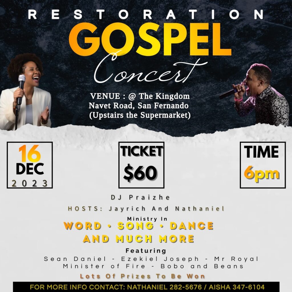 � DATE: Saturday 16th December, 2023 � TIME: 6pm � VENUE: @ The Kingdom Navet Road, San Fernando � TICKET: $60 , DOOR PRICE: $70 Join us as we