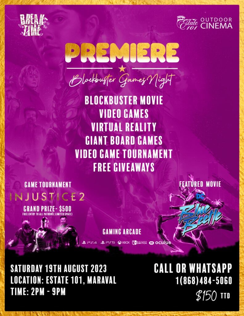 Get ready for the greatest “Premiere” event. The first of its kind. Break Time 868 in Collaboration with Estate 101 presents: “Premiere” Blockbuster Games Night It all happens Saturday the