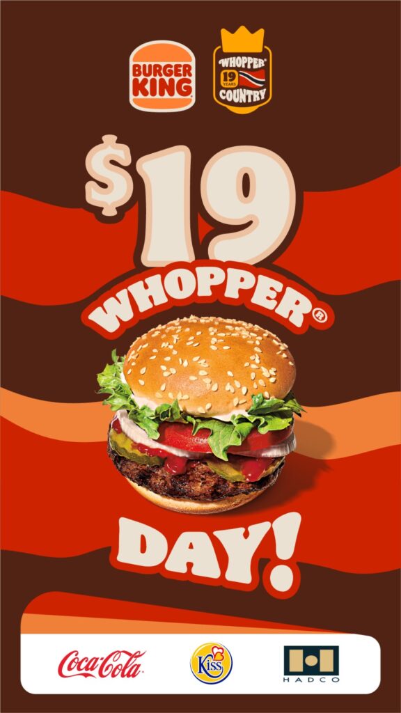 Burger King is celebrating its 19th Anniversary and our theme is Whopper Country. To celebrate, this Saturday is $19 Whopper Day. It’s what you have been Whop-A-Ing for!!!! ???????? $????????