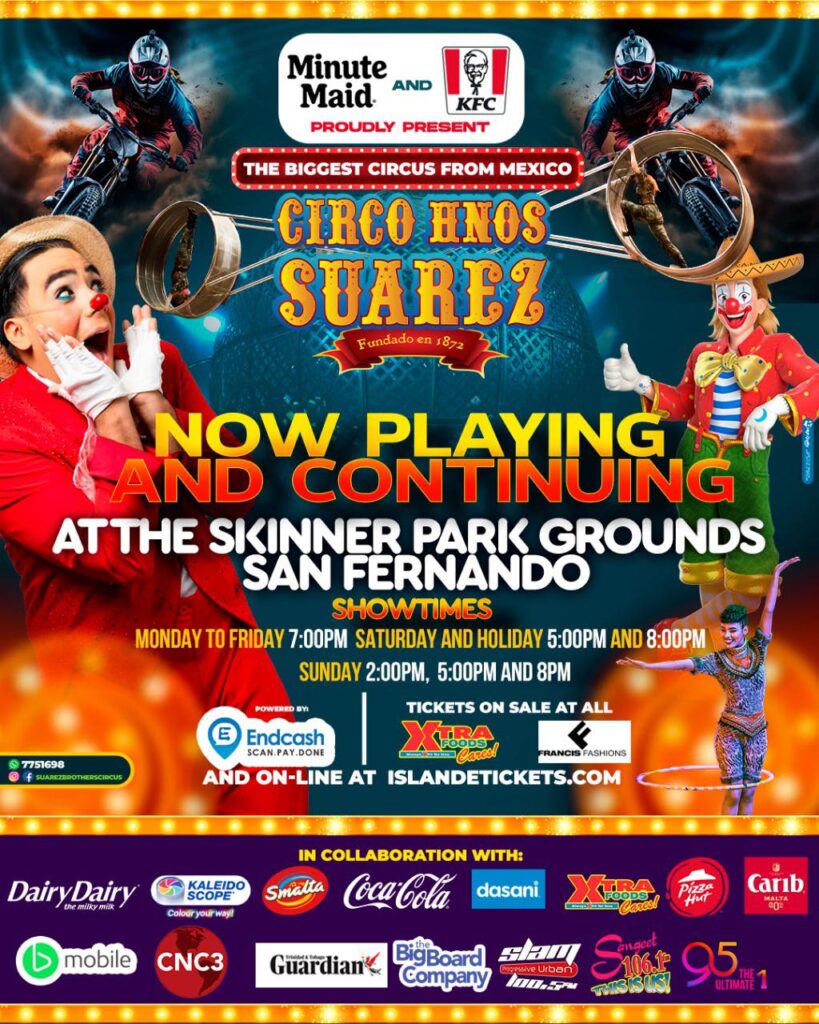 uarez Brothers Circus 🎪 NOW PLAYING AND CONTINUING DAILY‼️ San Fernando for a limited time only‼️🎪 With attractions from various parts of the world, jugglers, clowns, trapeze artists, acrobats, and